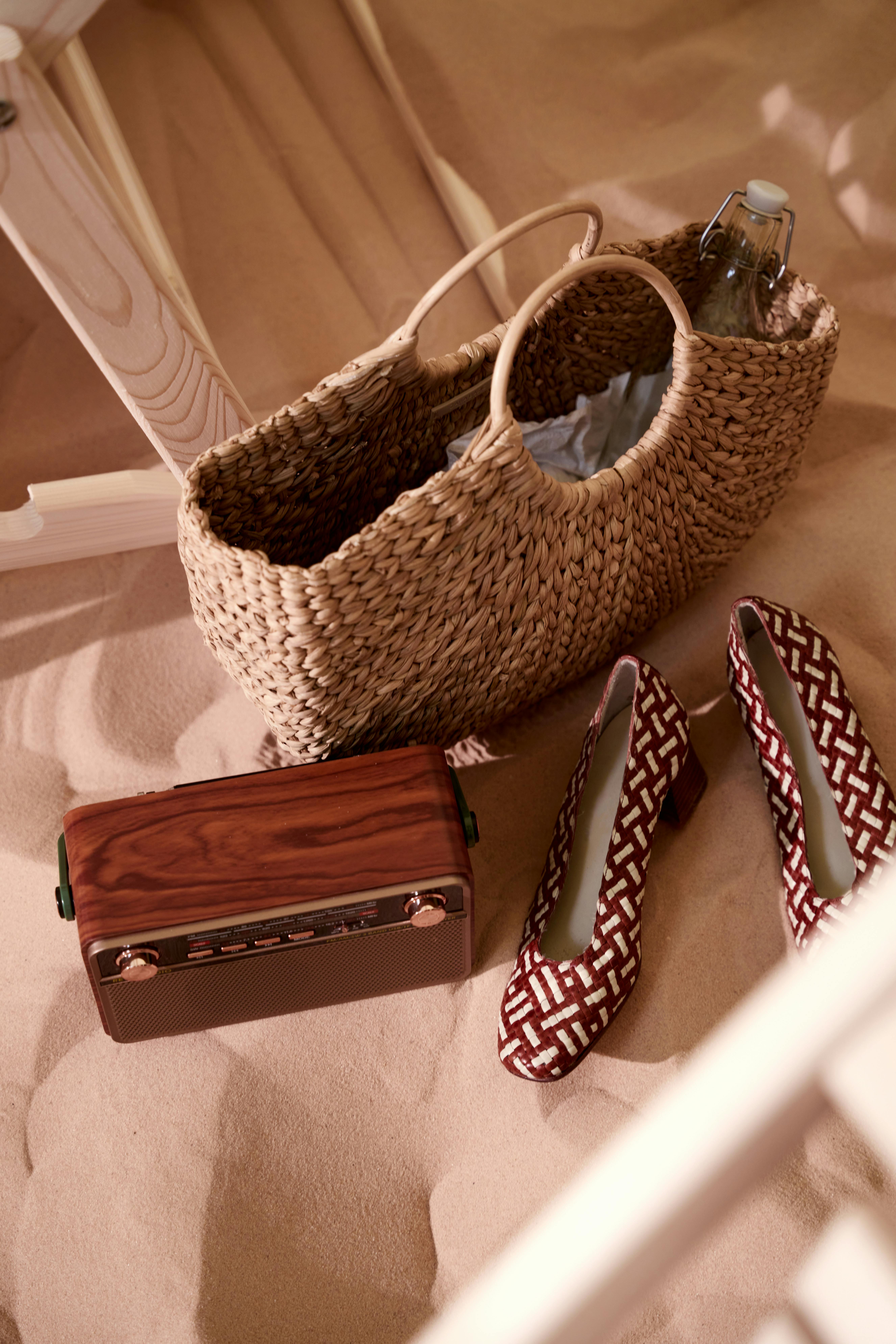 High-end, stitched leatherette storage baskets with handles in various shapes and colors.